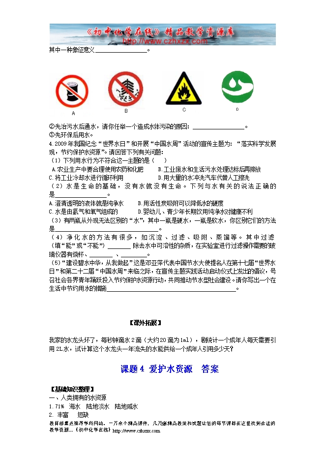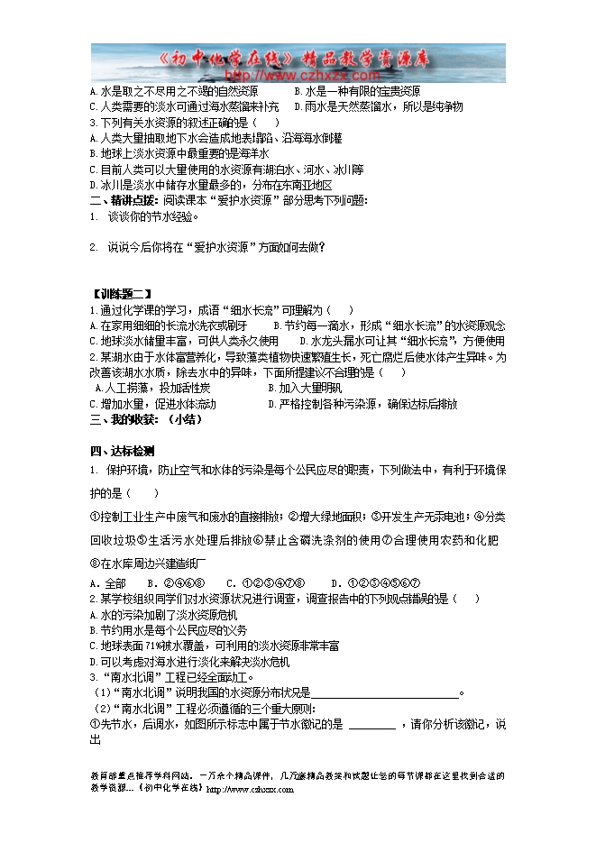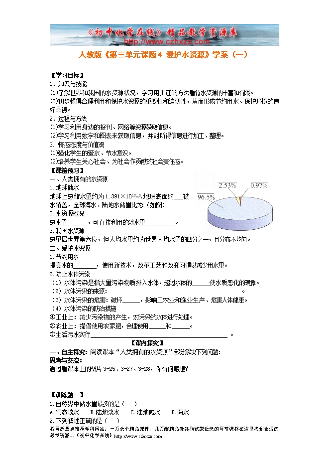 人教版《第四单元课题1 爱护水资源》学案(一)