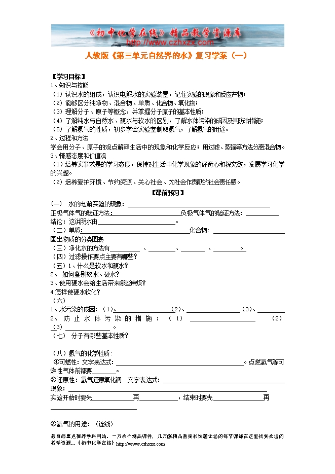 - 上一份资料:人教版《第四单元课题1 爱护水资源》学案(一)
