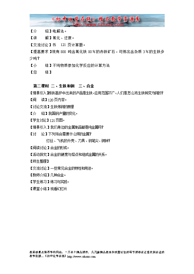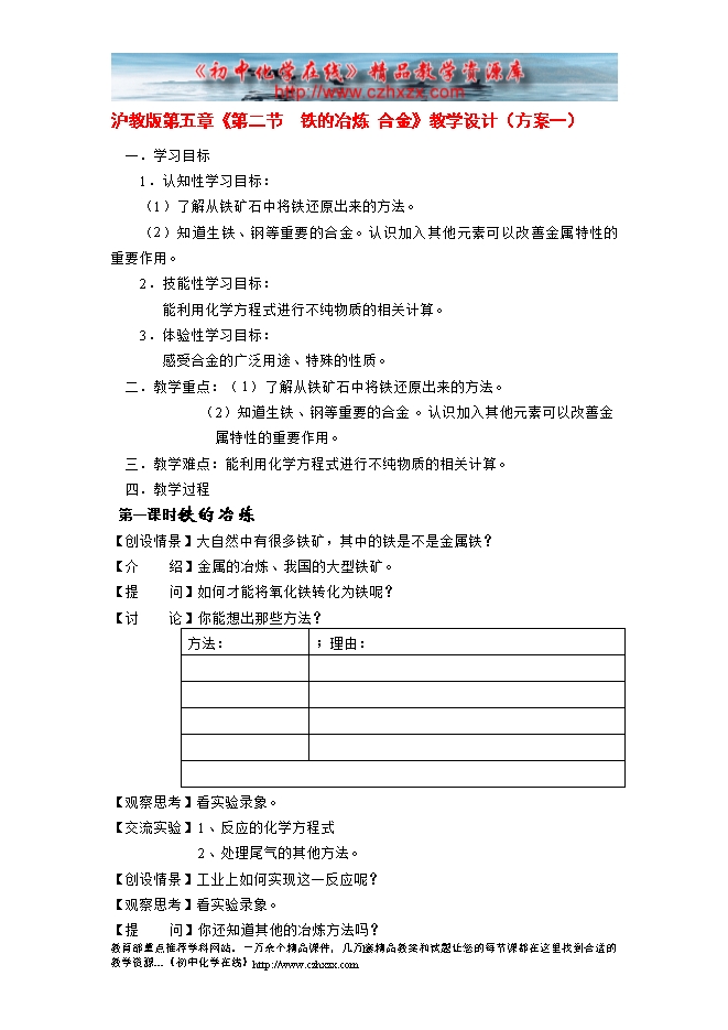 沪教版第五章《第二节 金属矿物 铁的冶炼》教学设计(方案一)