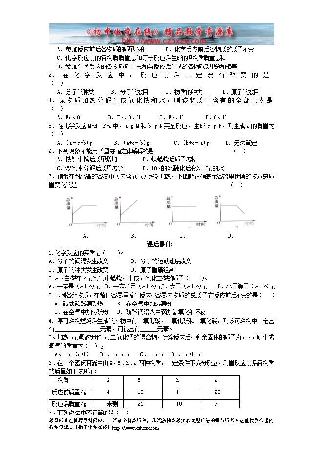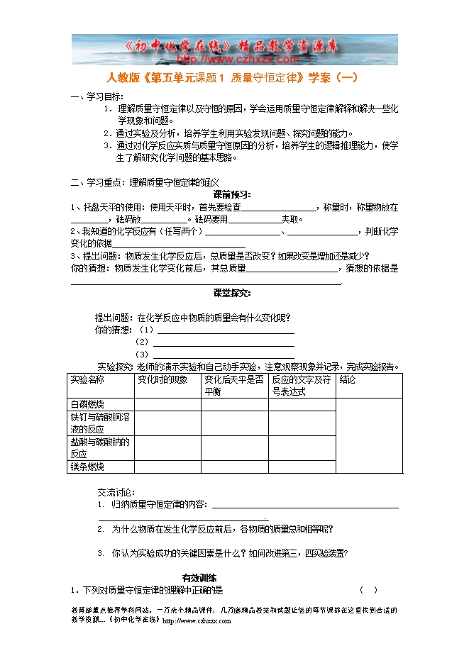 人教版《第五单元课题1 质量守恒定律》学案(一)