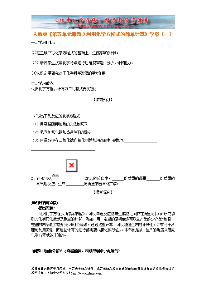 人教版《第五单元课题3 利用化学方程式的简单计算》学案(一)