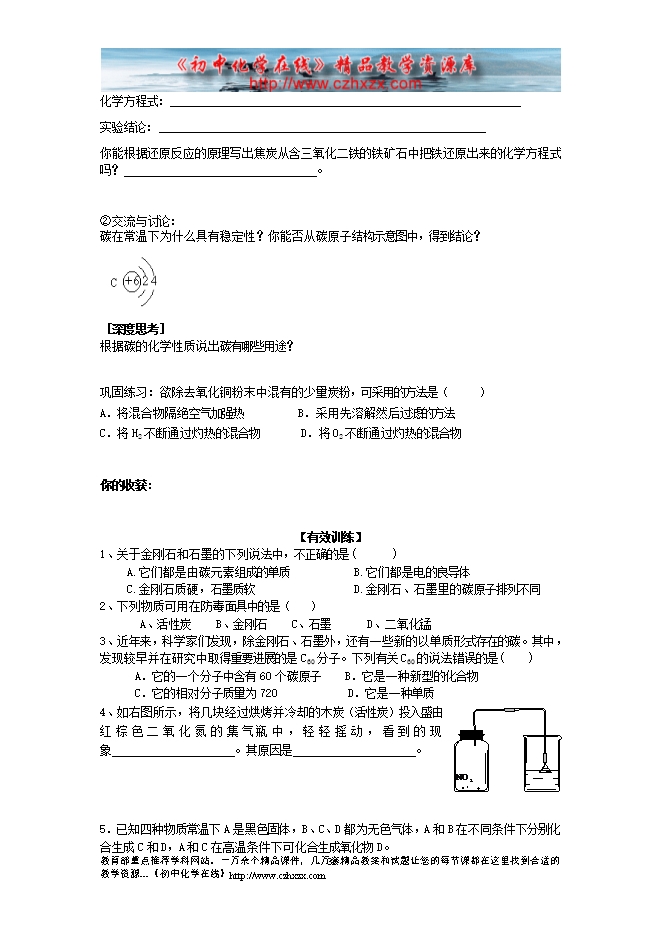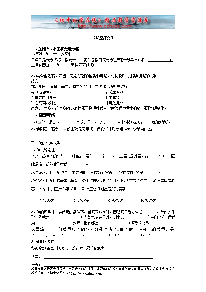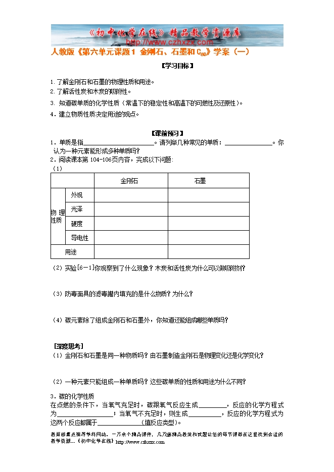 人教版《第六单元课题1 金刚石、石墨和C60》学案(一)