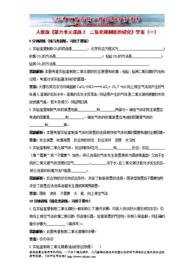 人教版《第六单元课题2 二氧化碳制取的研究》学案(一)