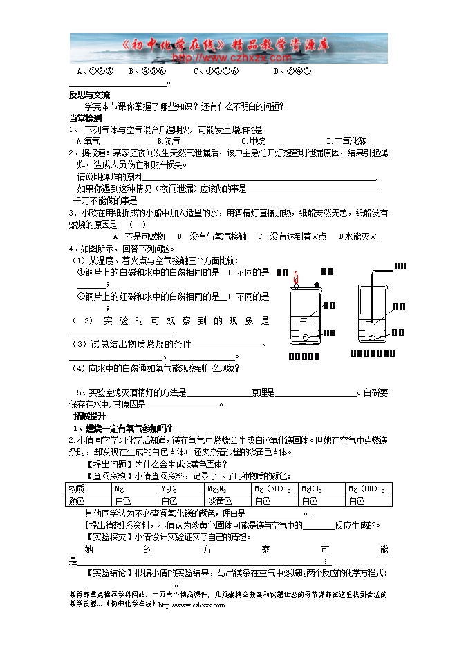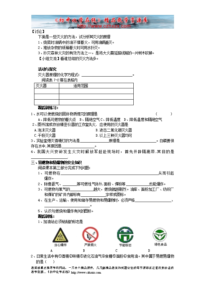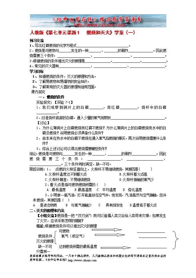 人教版《第七单元课题1 燃烧和灭火》学案(一)