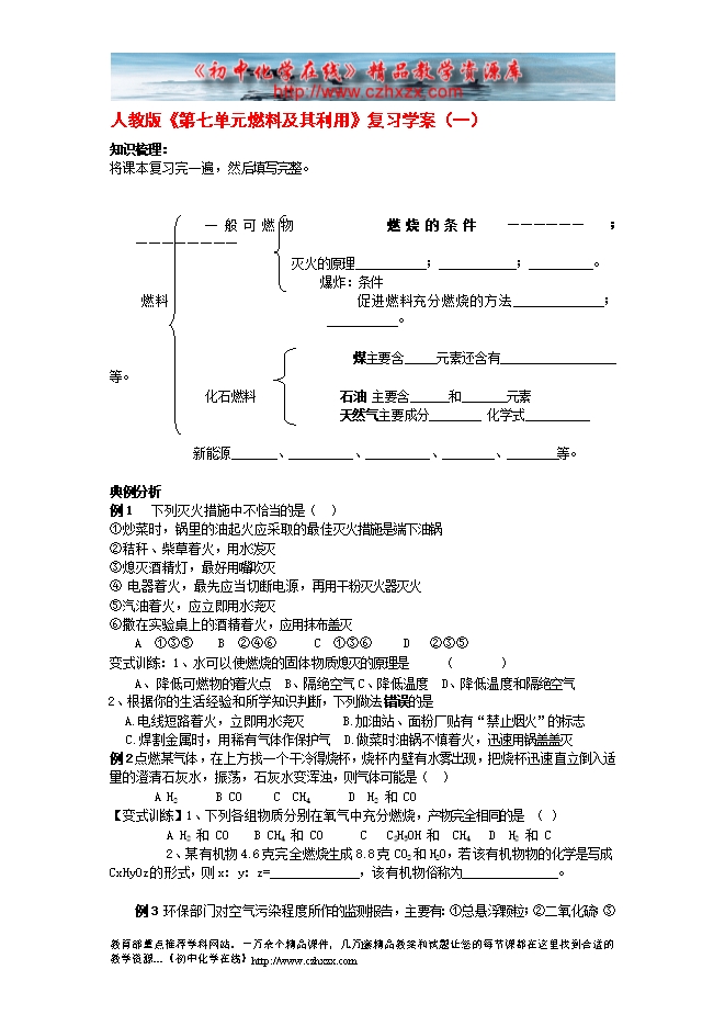 - 上一份资料:人教版《第七单元课题1 燃烧和灭火》学案(一)
