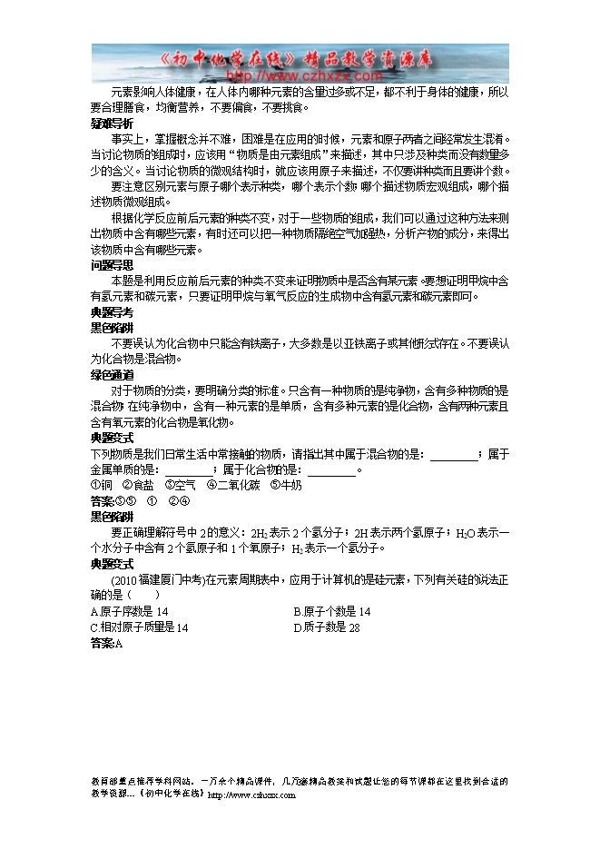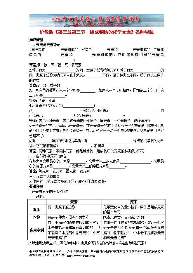 沪教版《第三章第二节 组成物质的化学元素》名师导航