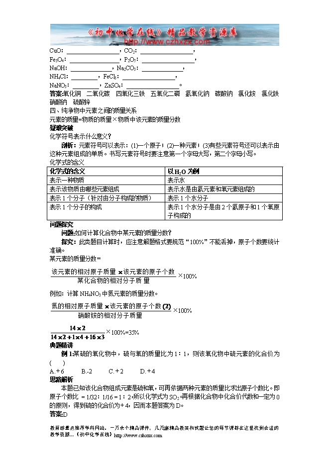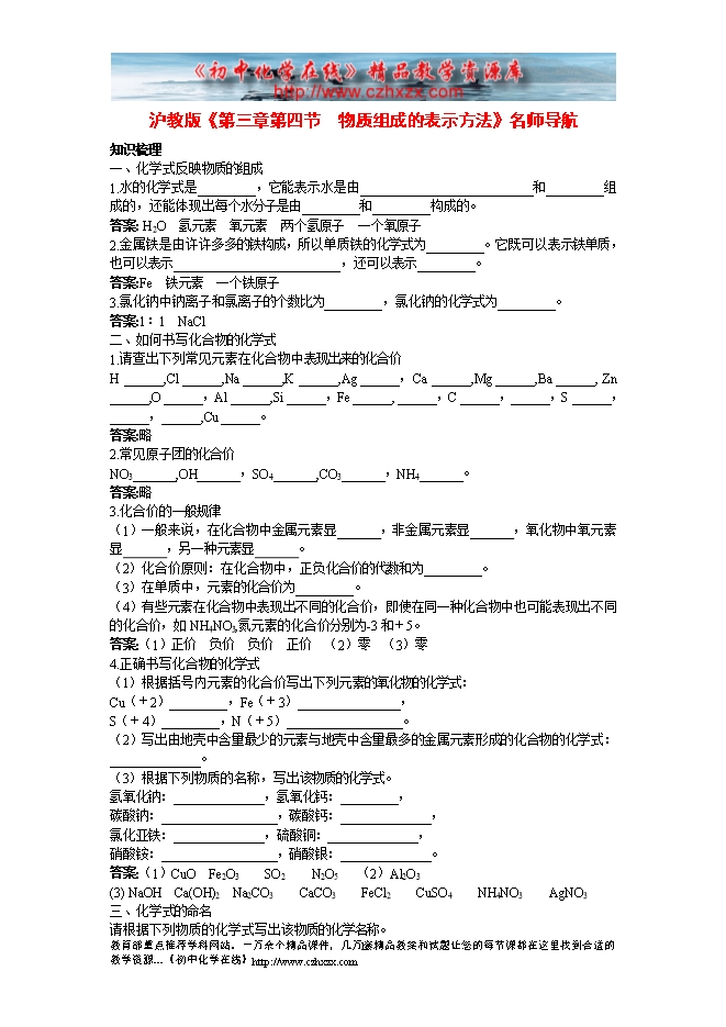 沪教版《第三章第四节 物质组成的表示方法》名师导航