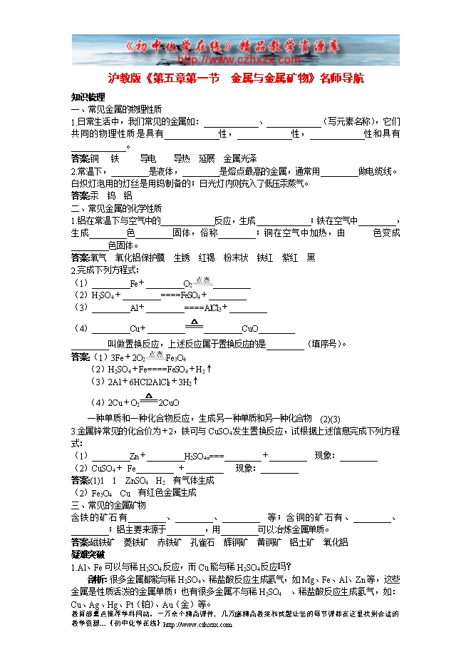 沪教版《第五章第二节 金属矿物 铁的冶炼》名师导航