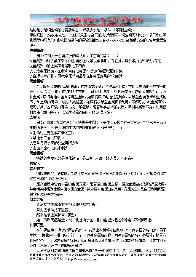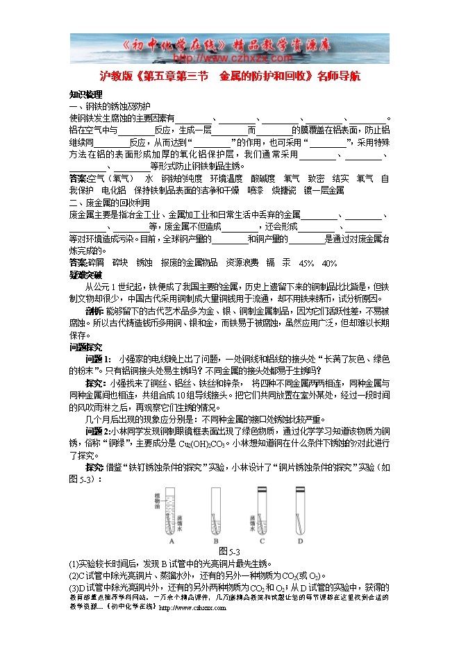 沪教版《第五章第三节 金属防护和废金属回收》名师导航