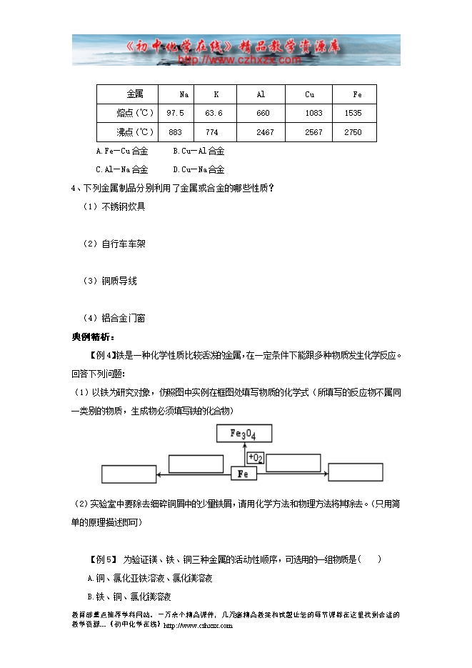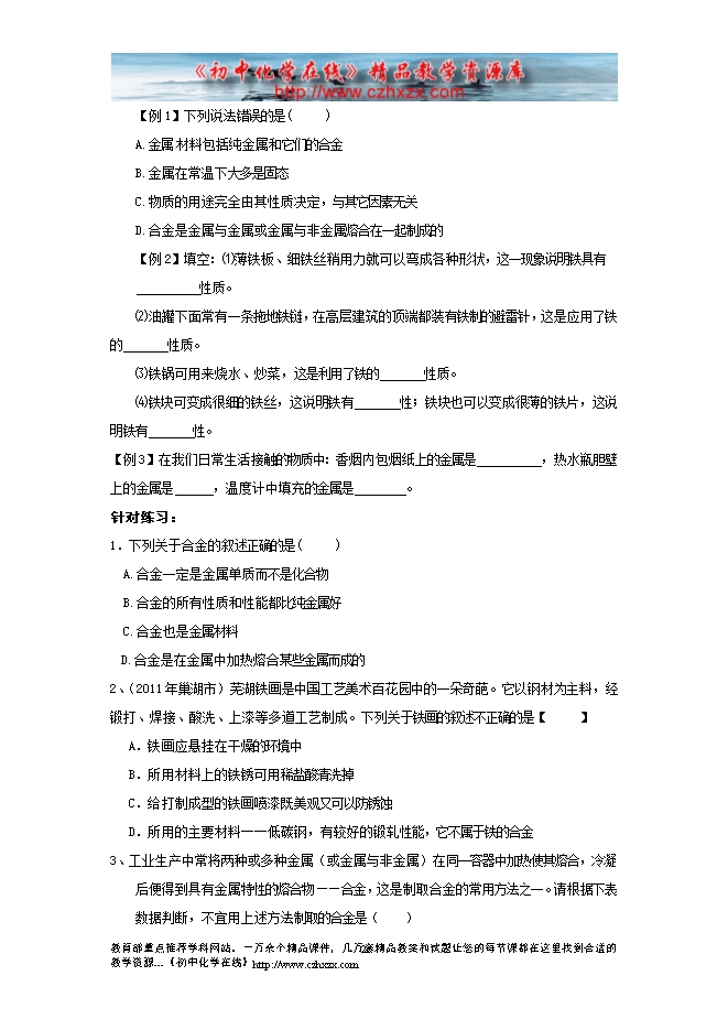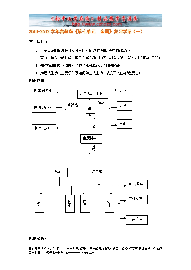 2011-2012学年鲁教版《第九章 金属》复习学案(一)