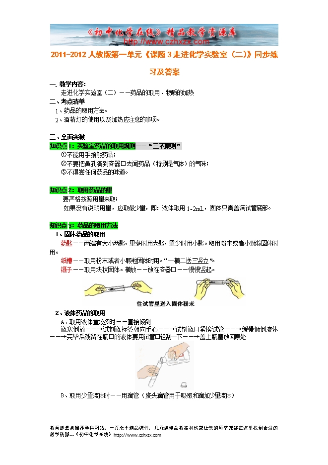 2011-2012人教版第一单元《课题3 走进化学实验室(二)》同步练习及答案