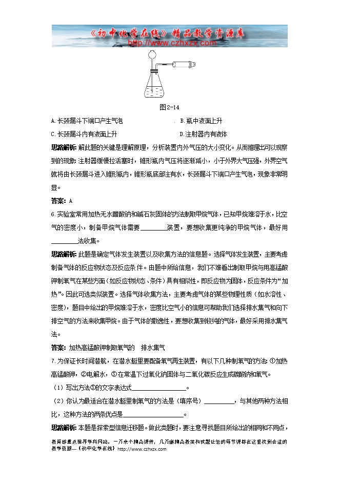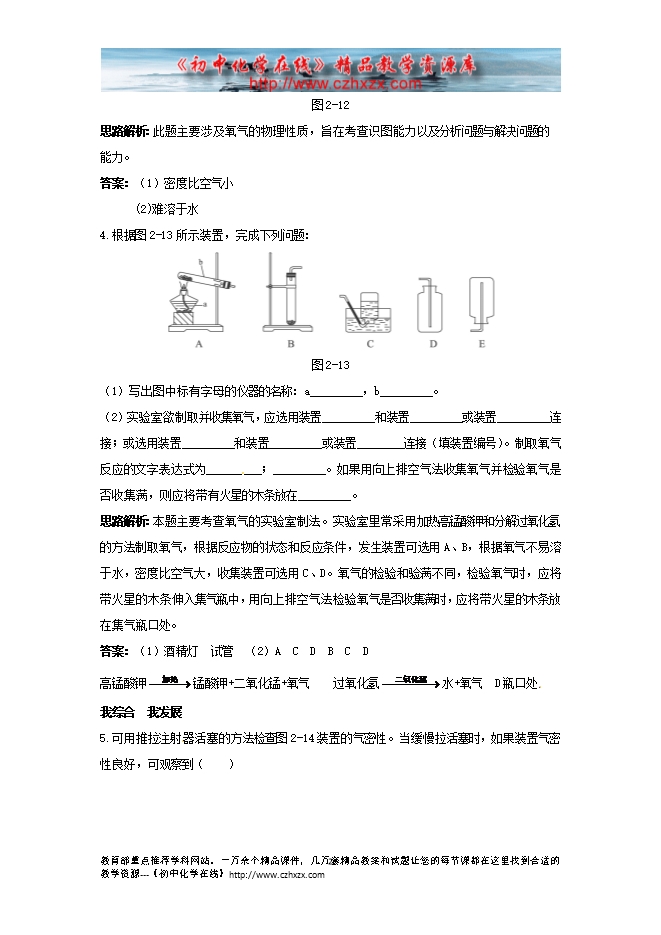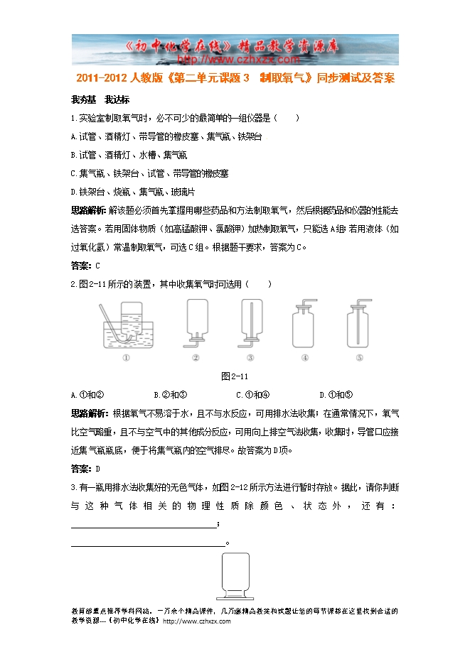 2011-2012人教版《第二单元课题3 制取氧气 》同步测试及答案