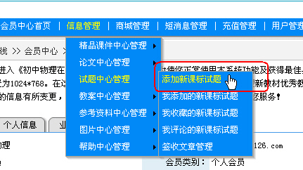 二、选择“信息管理”菜单-----"试卷中心管理"------"添加新课标试卷",进入“添加新课标试卷”主界面。