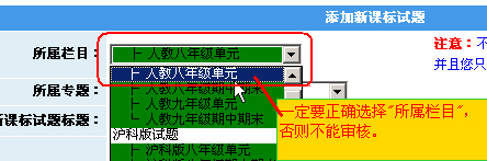 2. 选择“所属专题” (统一选择“新课标新教材测试卷(全站)”)