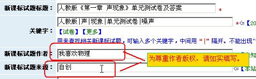 4. 填写“试卷作者”和“试卷来源”: