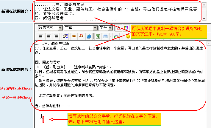 (2)“新课标试卷内容”框中的填写方法: