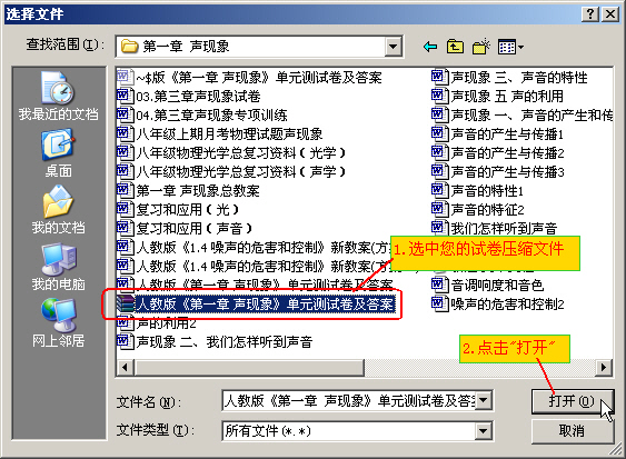 上传前您首先要注册一个普通用户,准备好上传的试卷,必须是word文档(因为试卷中图形不能直接复制到<新课标教案内容>框中),并把这个word文档用winrar软件压缩成rar文件,等待用附件形式上传。