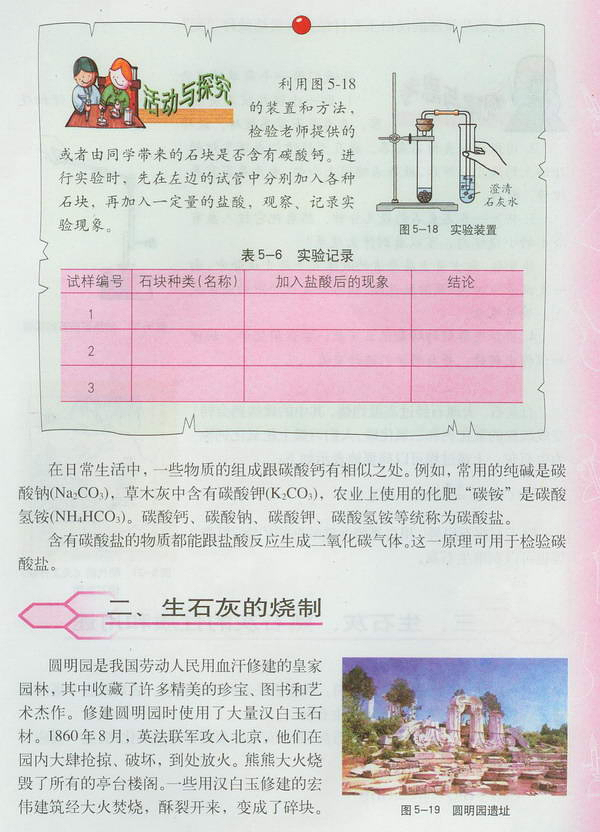 沪教版《第五章第四节 石灰石的利用》电子课本
