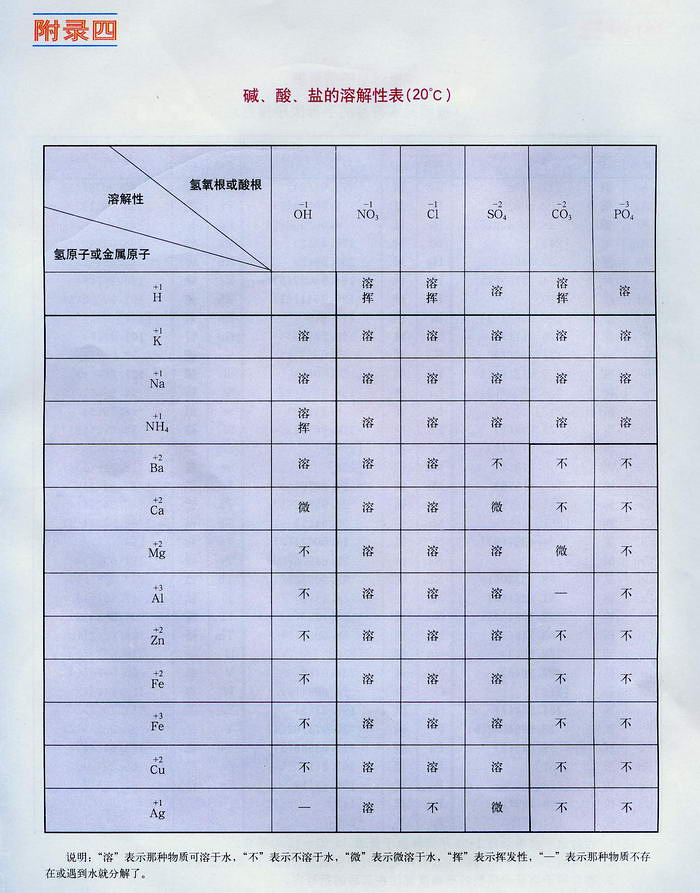 沪教版初中化学《下册附录四碱、酸、盐的溶解性表》电子课本