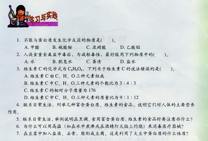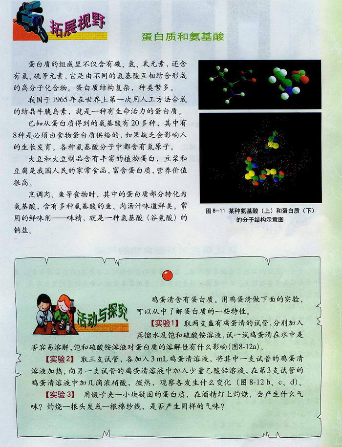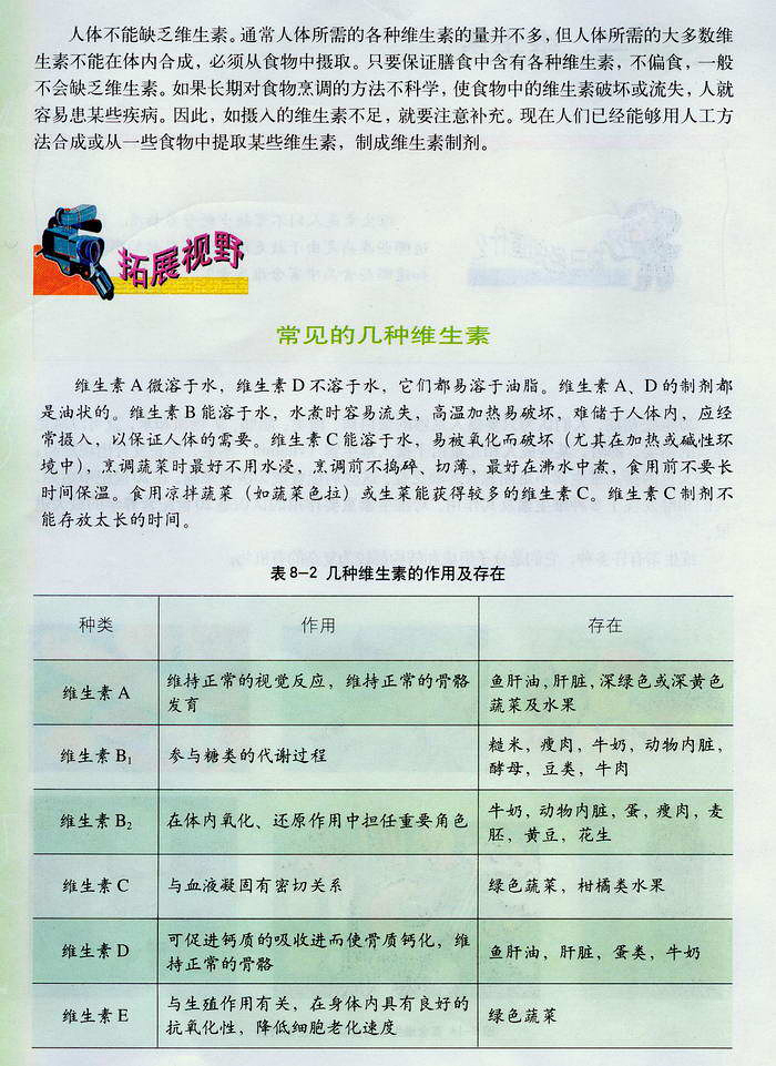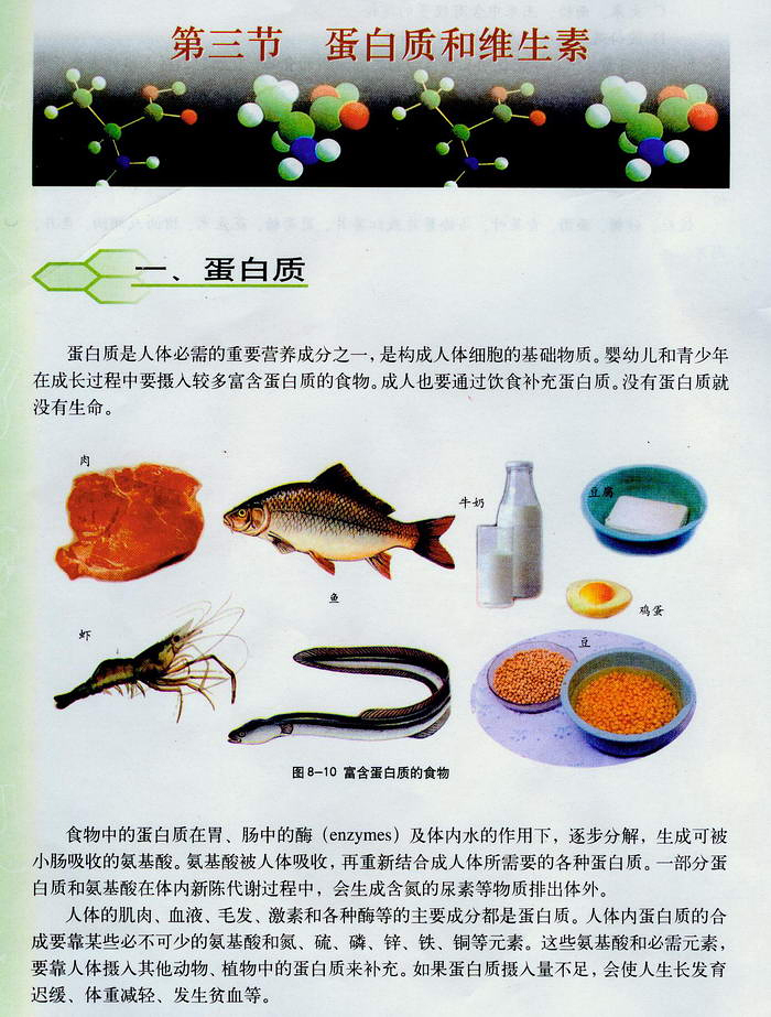 沪教版初中化学《第八章第三节 蛋白质和维生素》电子课本