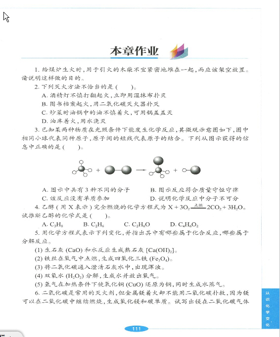 2012年新沪教版化学九年级上册《第四章 本章作业》电子课本