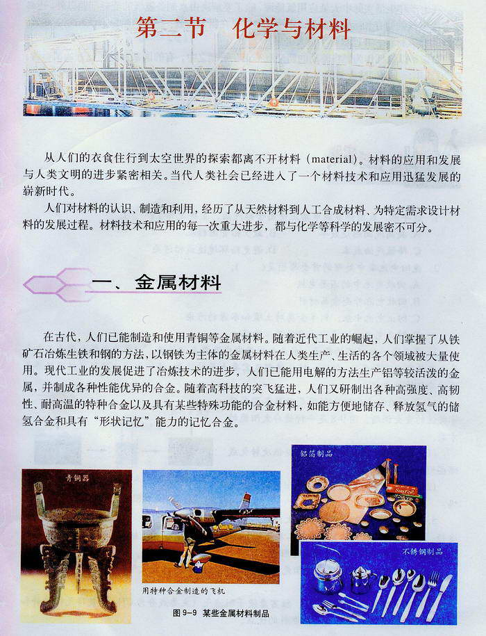 沪教版初中化学《第九章第二节 化学与材料》电子课本