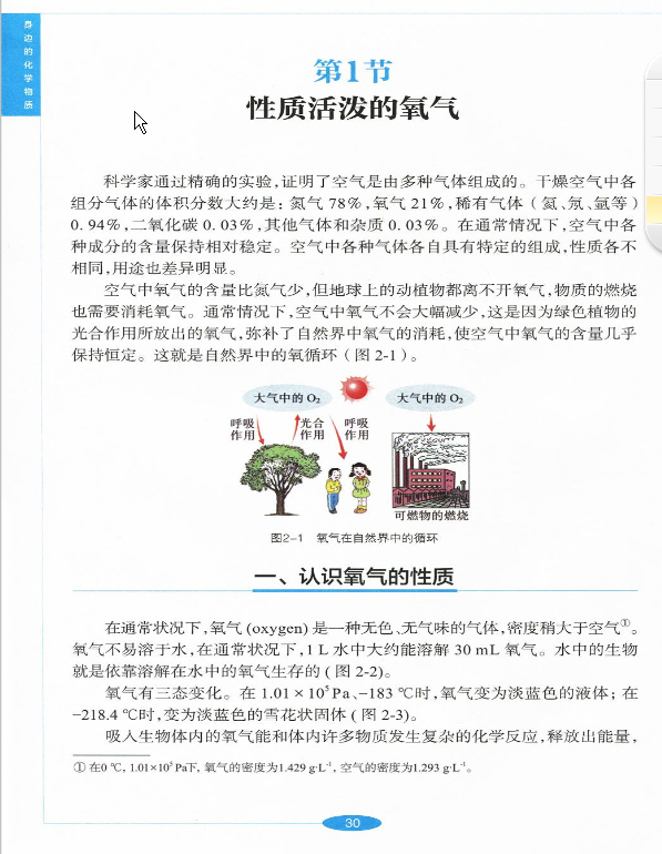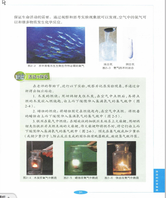 2012年新沪教版化学九年级上册《2.1性质活泼的氧》电子课本