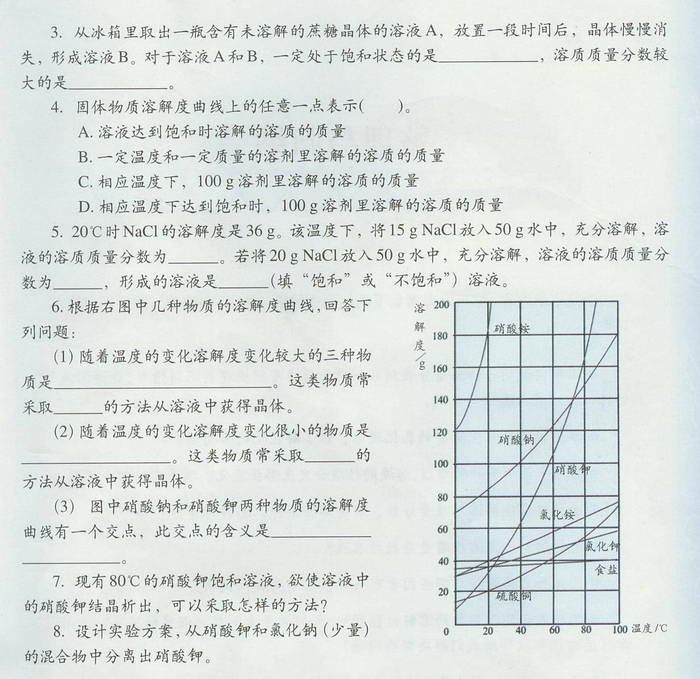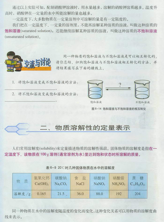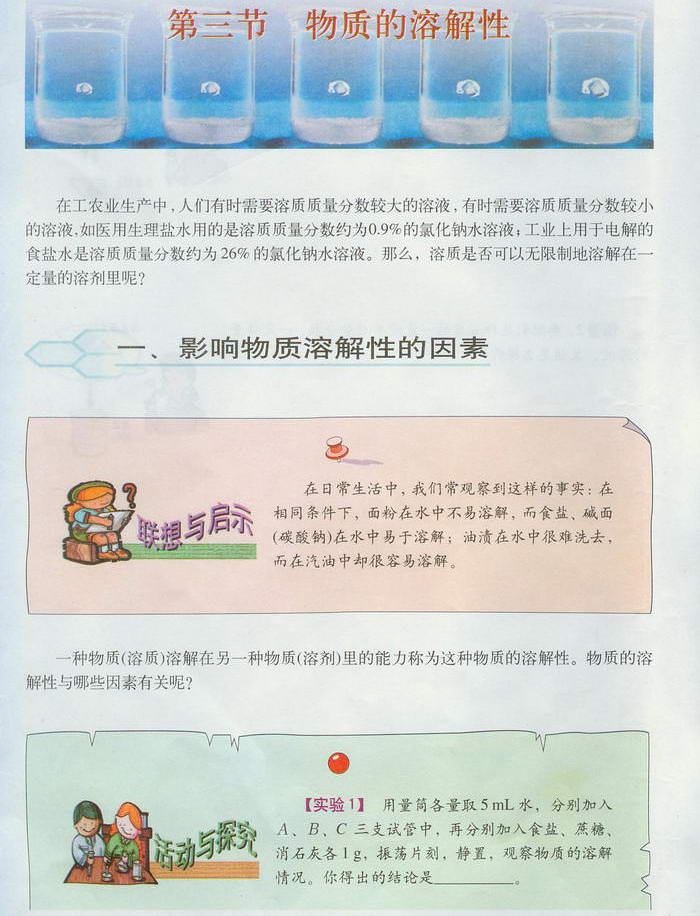 沪教版初中化学《第六章第三节 物质的溶解性》电子课本