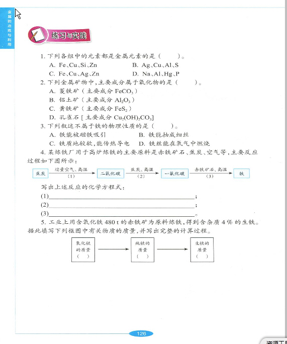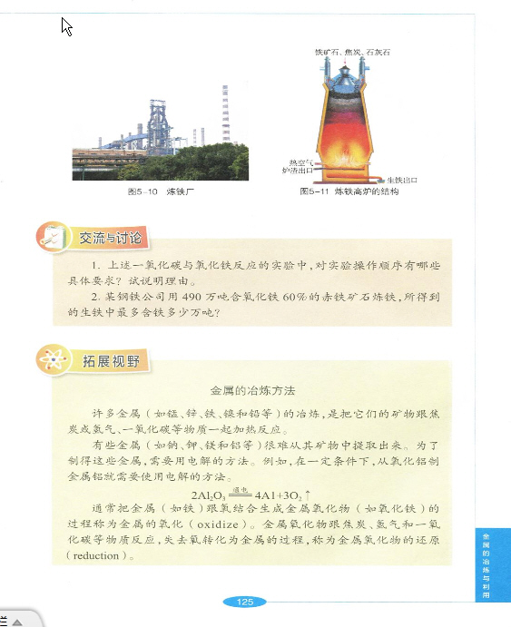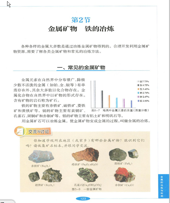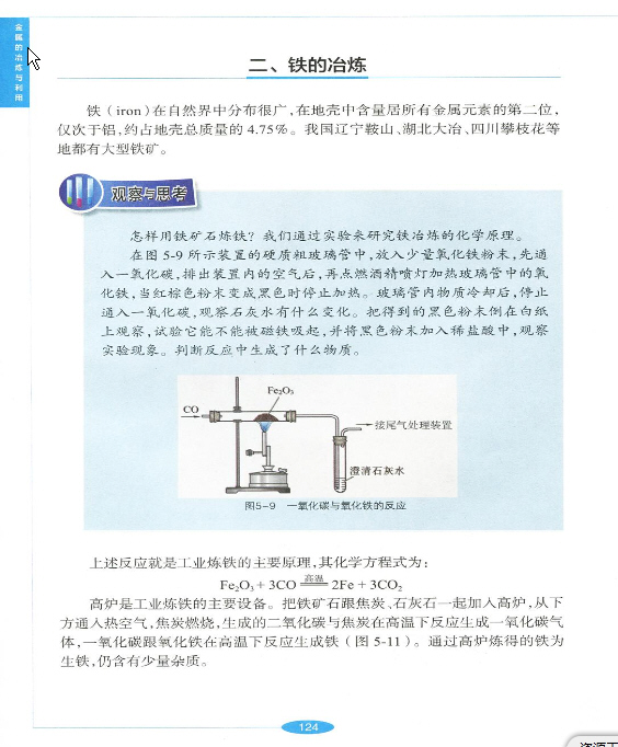 2012年新沪教版化学九年级上册《5.2 金属矿物 铁的冶炼》电子课本
