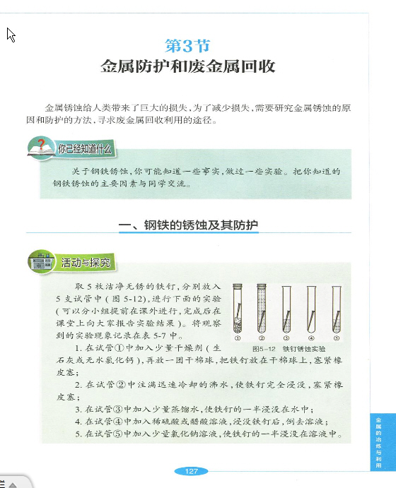 2012年新沪教版化学九年级上册《5.3 金属防护和废金属回收》电子课本