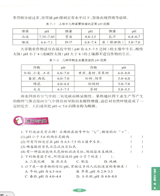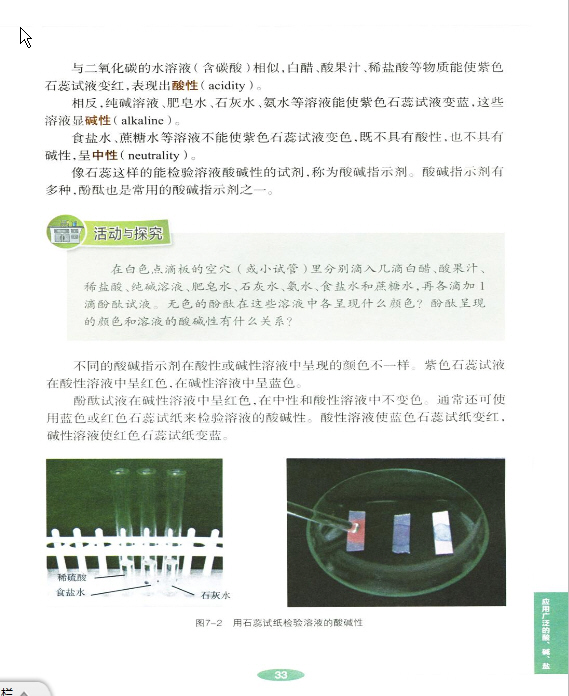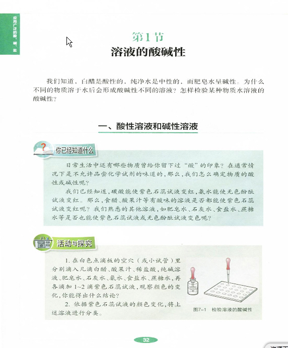 2013年新沪教版化学九年级下册《第七章 第一节溶液的酸碱性》电子课本