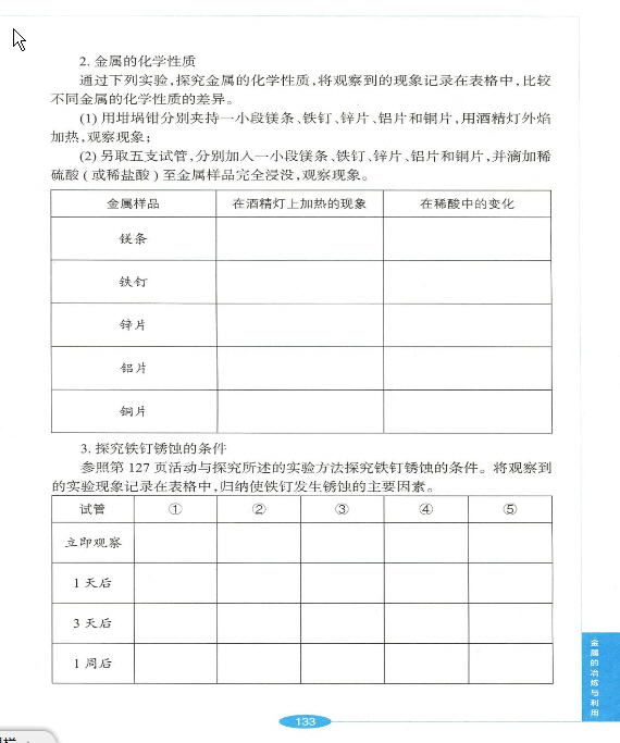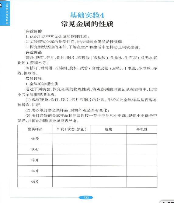 2012年新沪教版化学九年级上册《基础实验四:常见的金属性质》电子课本