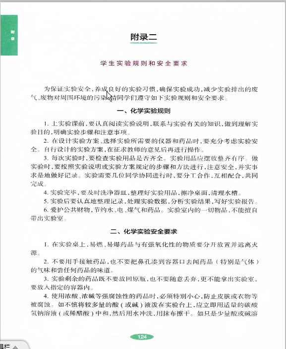 2013年新沪教版化学九年级下册《附录二 学生实验规则和安全要求》电子课本