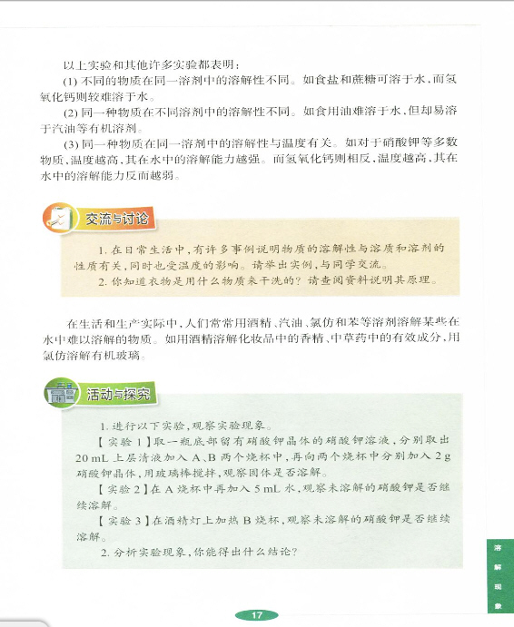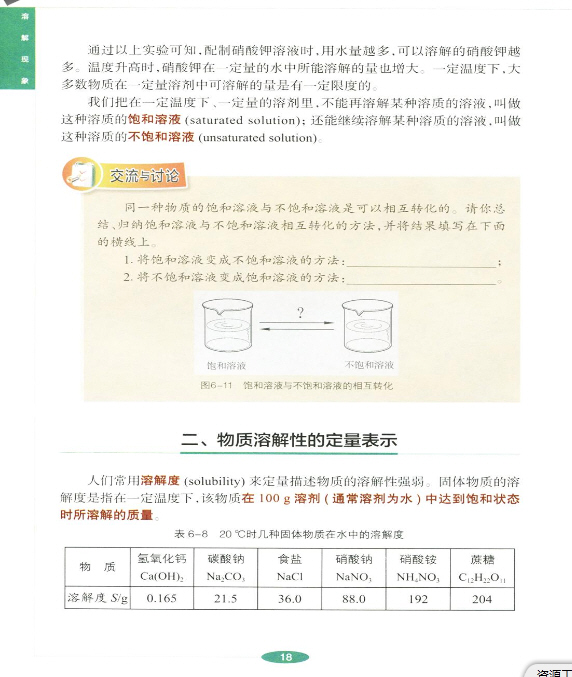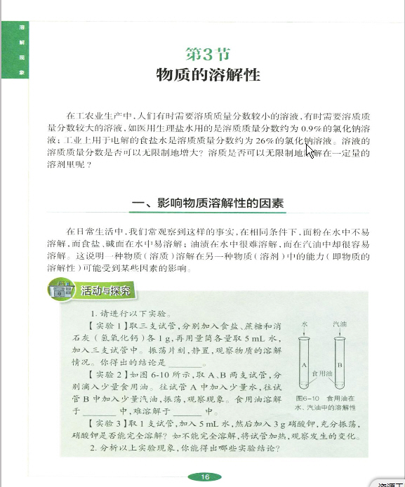 2013年新沪教版化学九年级下册《第六章 第三节物质的溶解性》电子课本