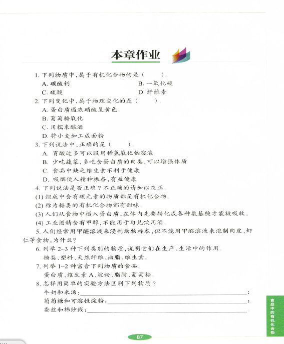 2013年新沪教版化学九年级下册《第八章 本章作业》电子课本