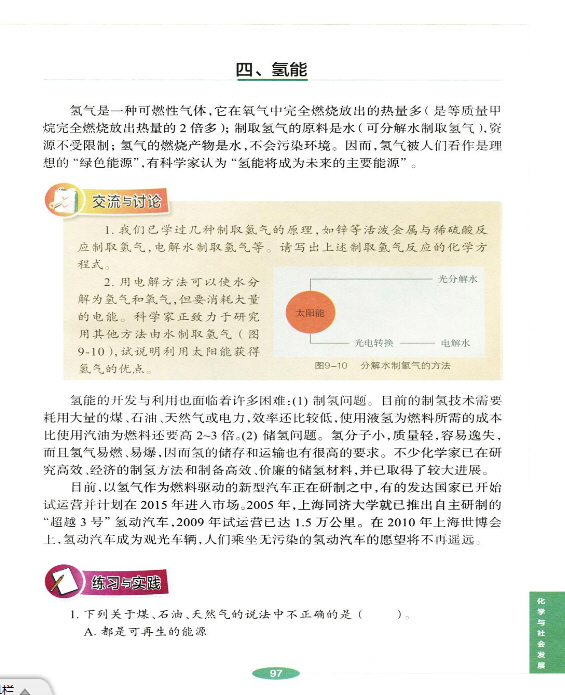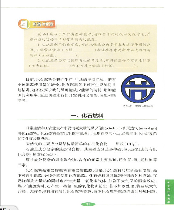 2013年新沪教版化学九年级下册《第九章 第一节能源的综合利用》电子课本