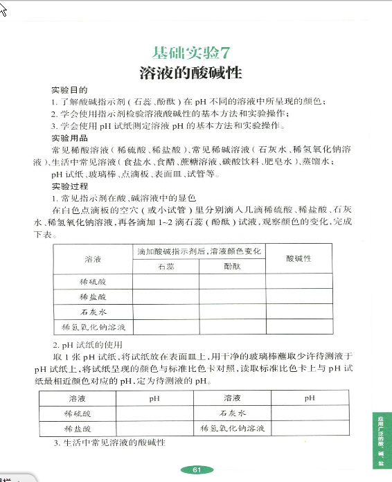 2013年新沪教版化学九年级上册《基础实验7 溶液的酸碱性》电子课本