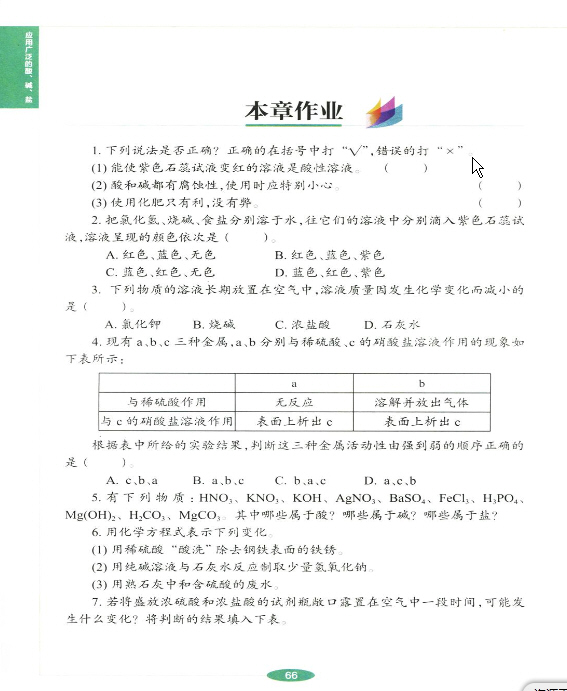 2013年新沪教版化学九年级下册《第七章 本章作业》电子课本