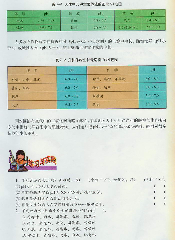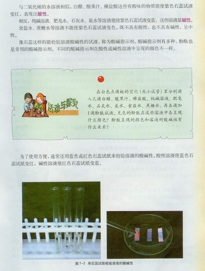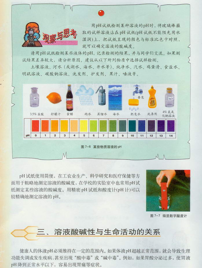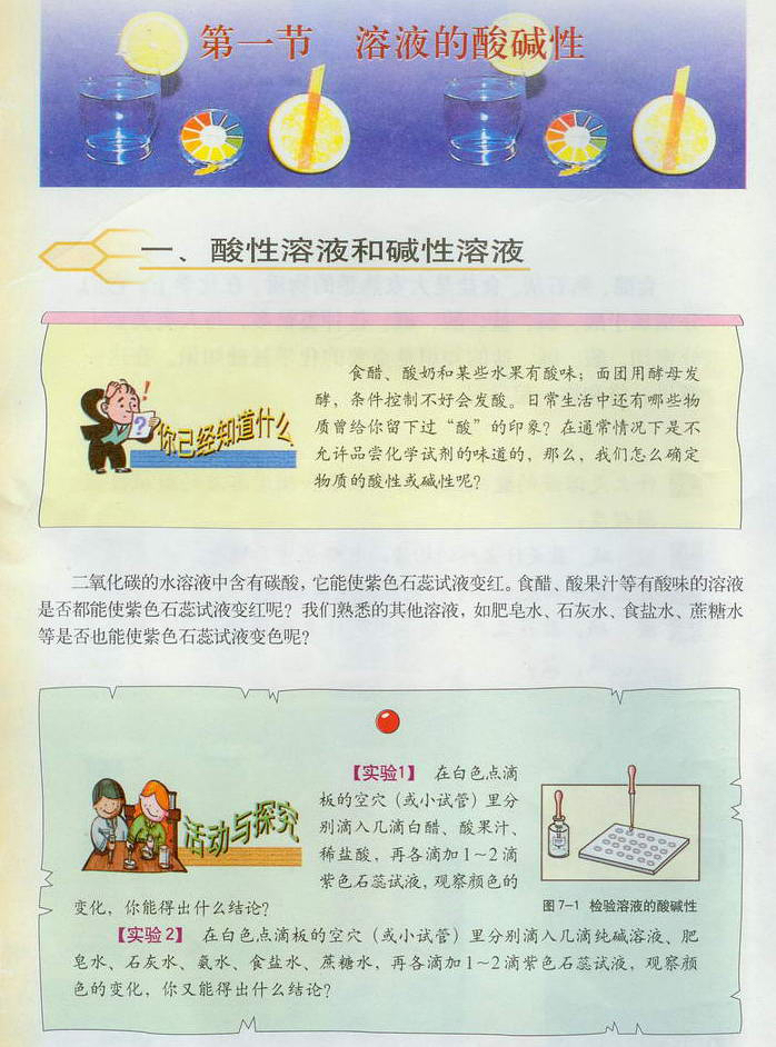 沪教版初中化学《第七章第一节 溶液的酸碱性》电子课本