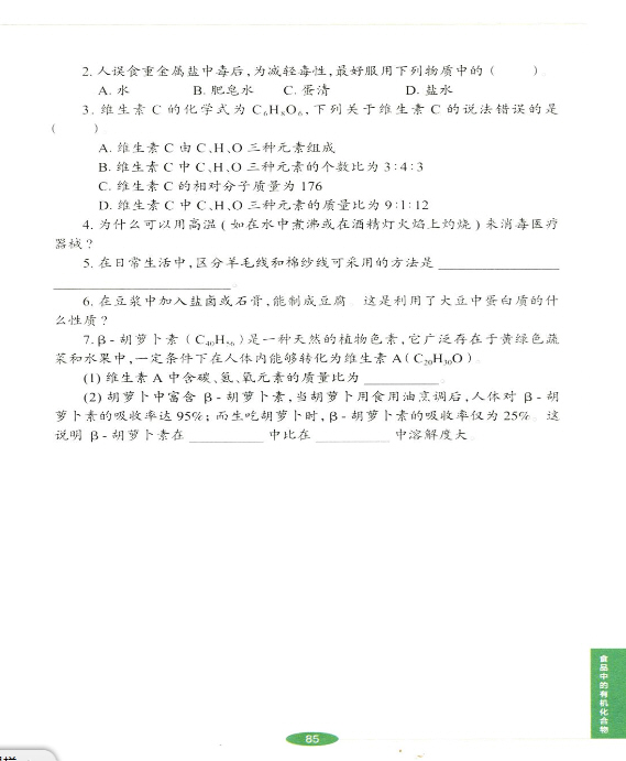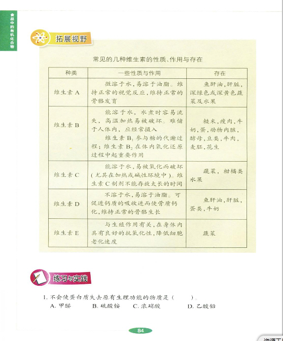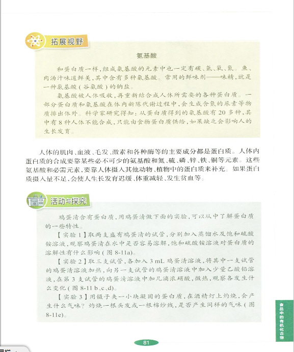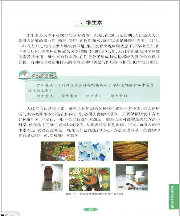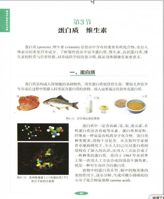 2013年新沪教版化学九年级下册《第八章 第三节蛋白质 维生素》电子课本