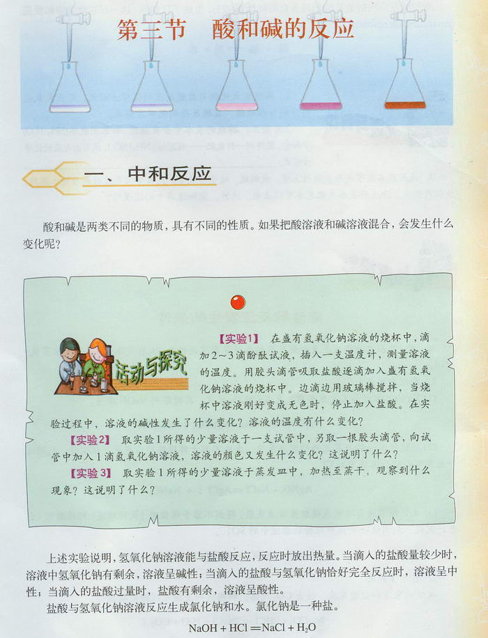 沪教版初中化学《第七章第三节 酸和碱的反应》电子课本