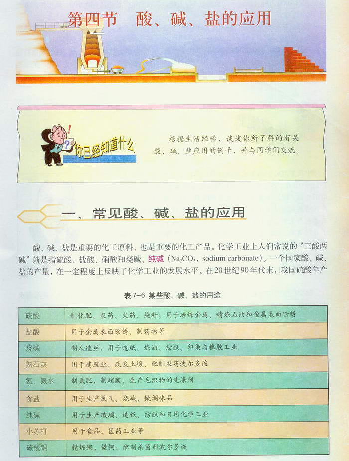 沪教版初中化学《第七章第四节 酸、碱盐的应用》电子课本
