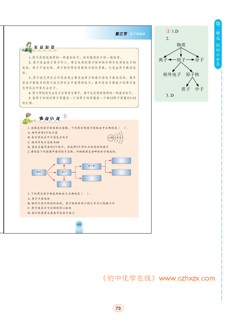 2012年新鲁教版化学九年级上册学习指导书《2.3原子的构成》电子课本1