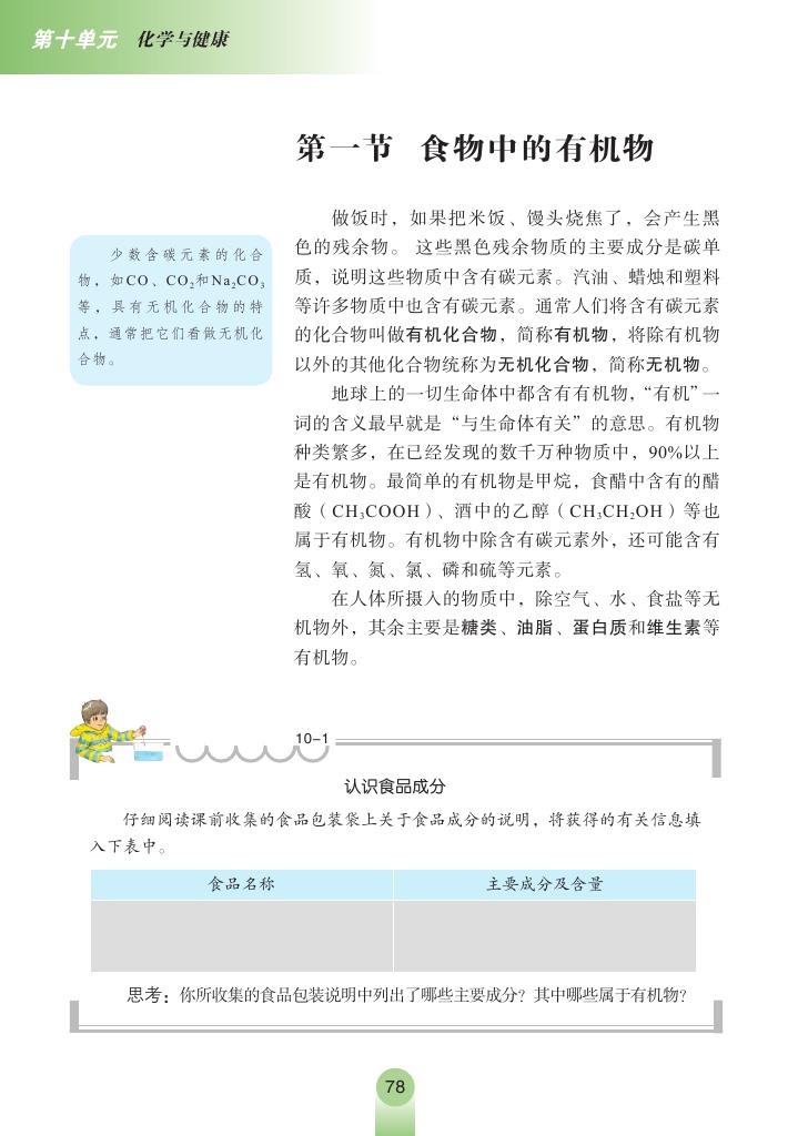 2012年新鲁教版化学九年级下册《10.1食物中的有机物》电子课本