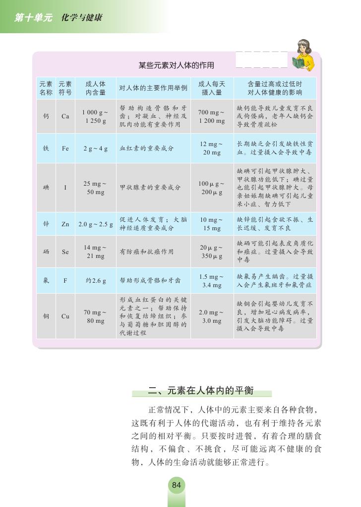 2012年新鲁教版化学九年级下册《10.2化学元素与人体健康》电子课本