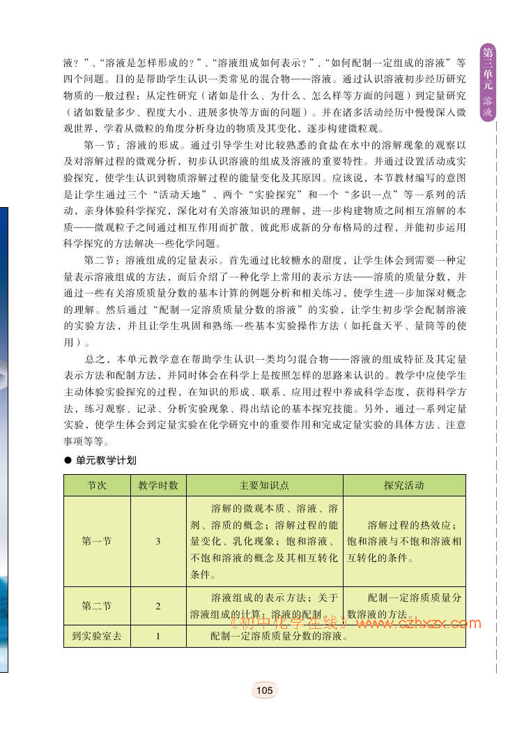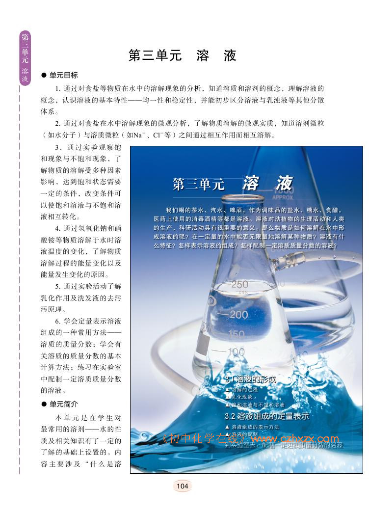 2012年新鲁教版化学九年级上册学习指导书《第三单元溶液》电子课本