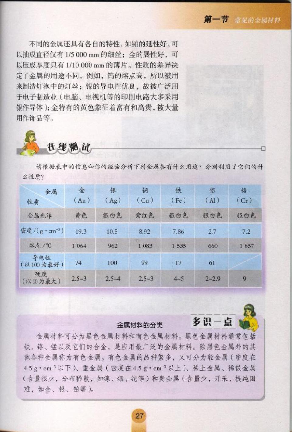 鲁教版初中化学《第七单元第一节常见的金属材料》电子课本