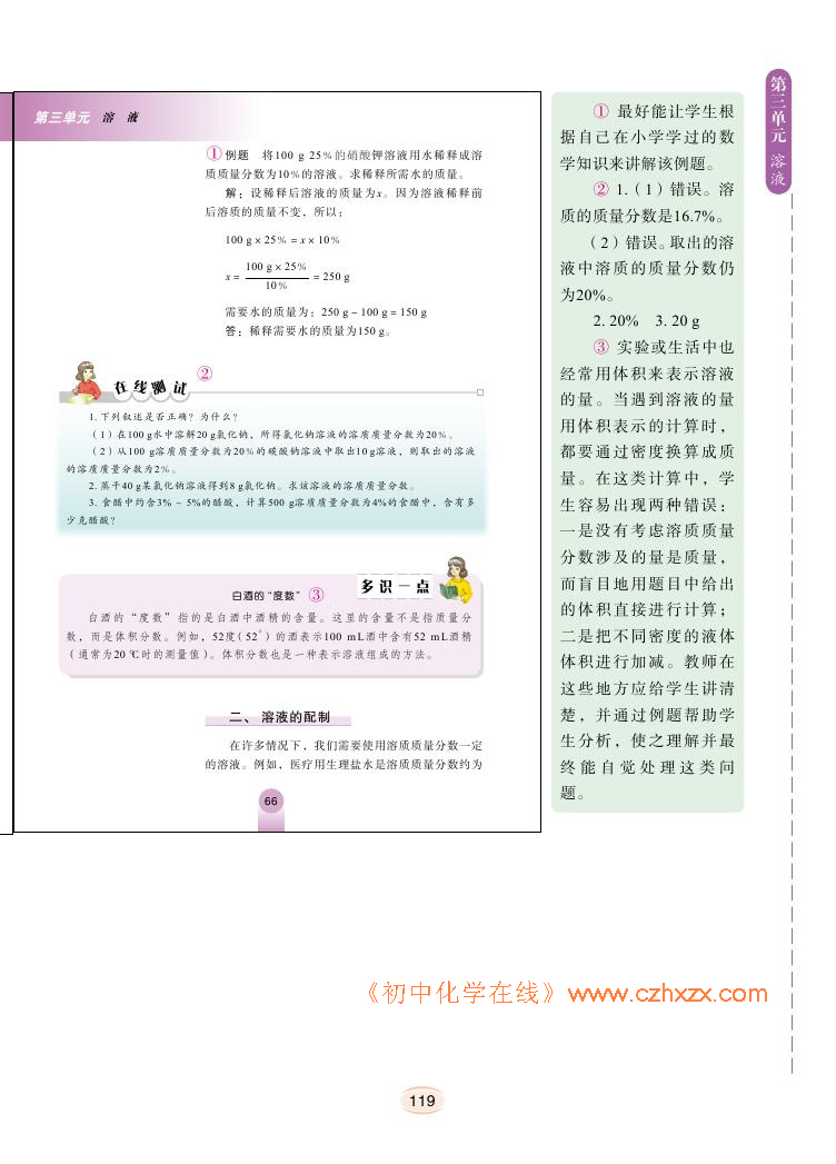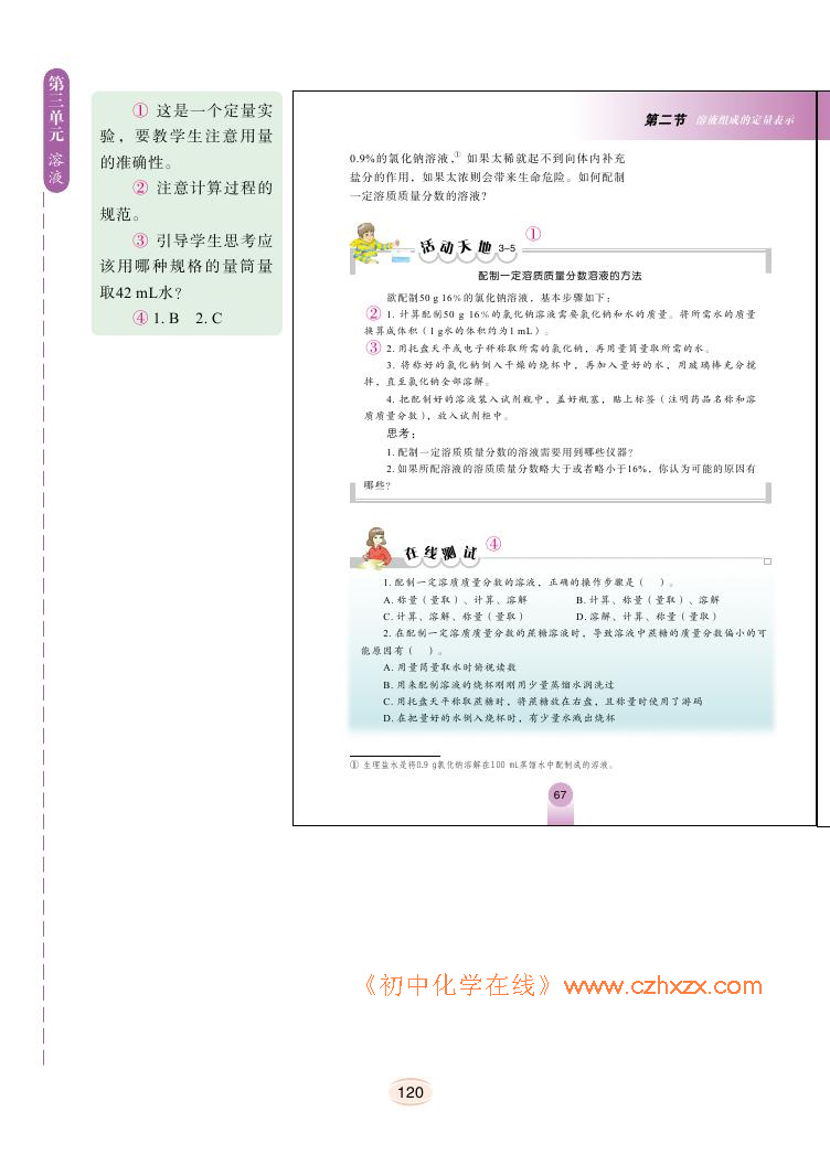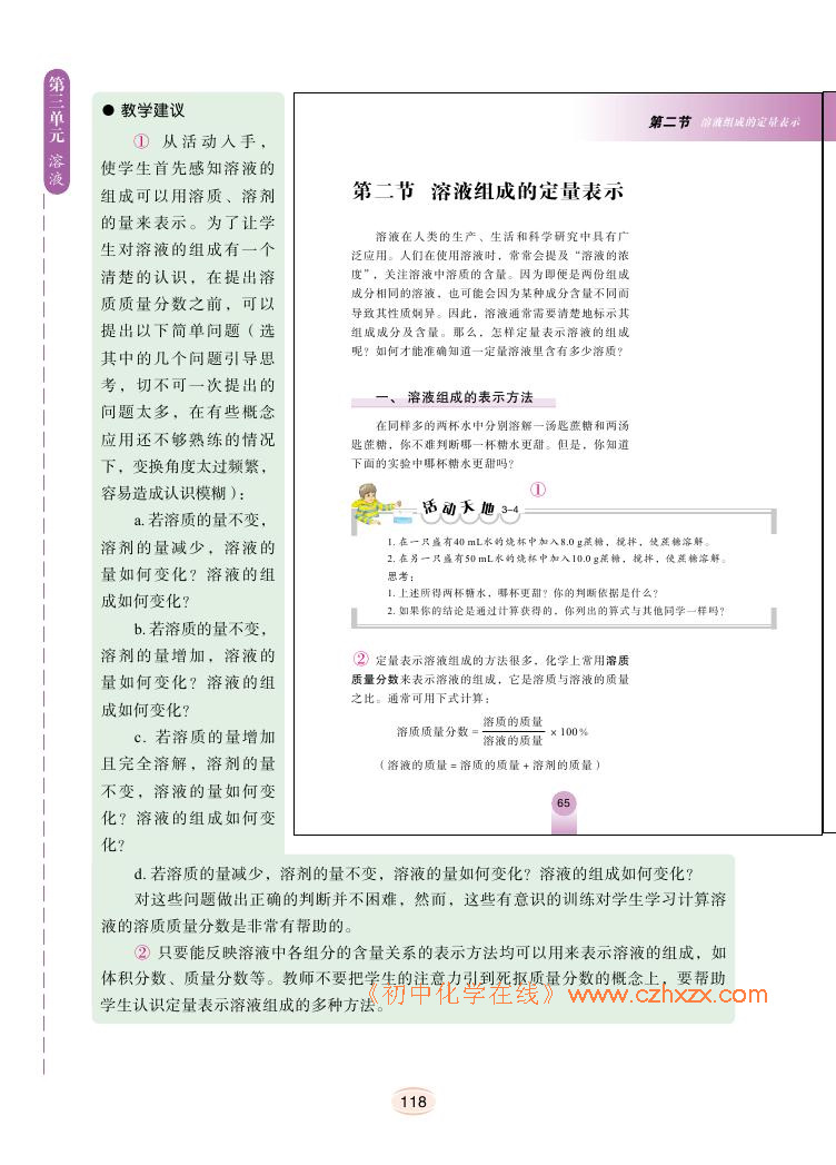 2012年新鲁教版化学九年级上册学习指导书《3.2溶液组成的定量表示》电子课本