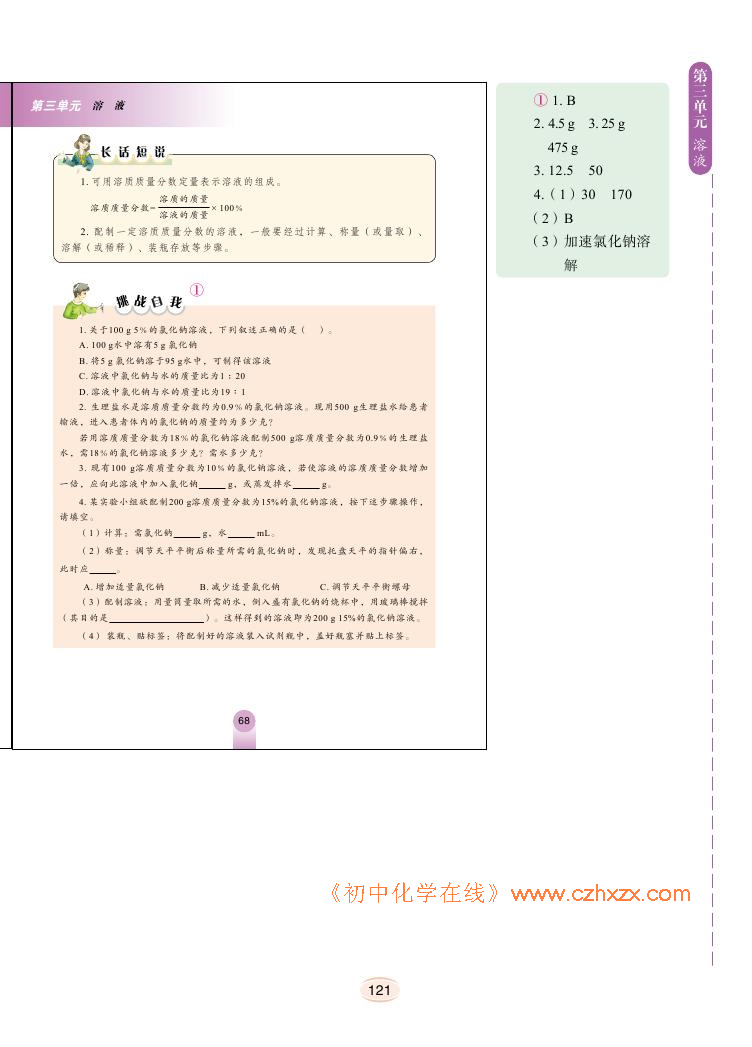 2012年新鲁教版化学九年级上册学习指导书《第三单元溶液单元练习及答案》电子课本