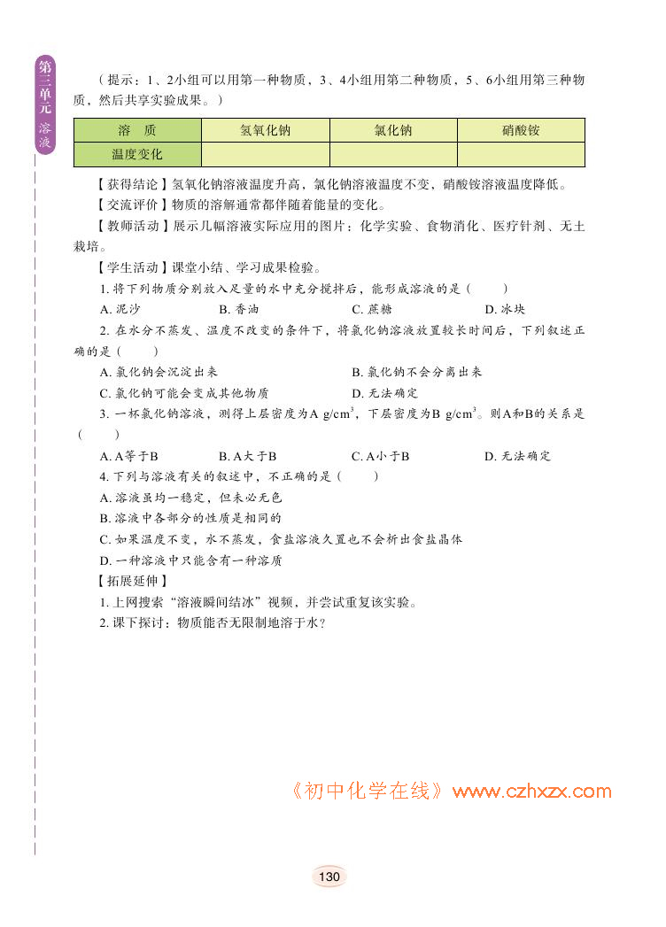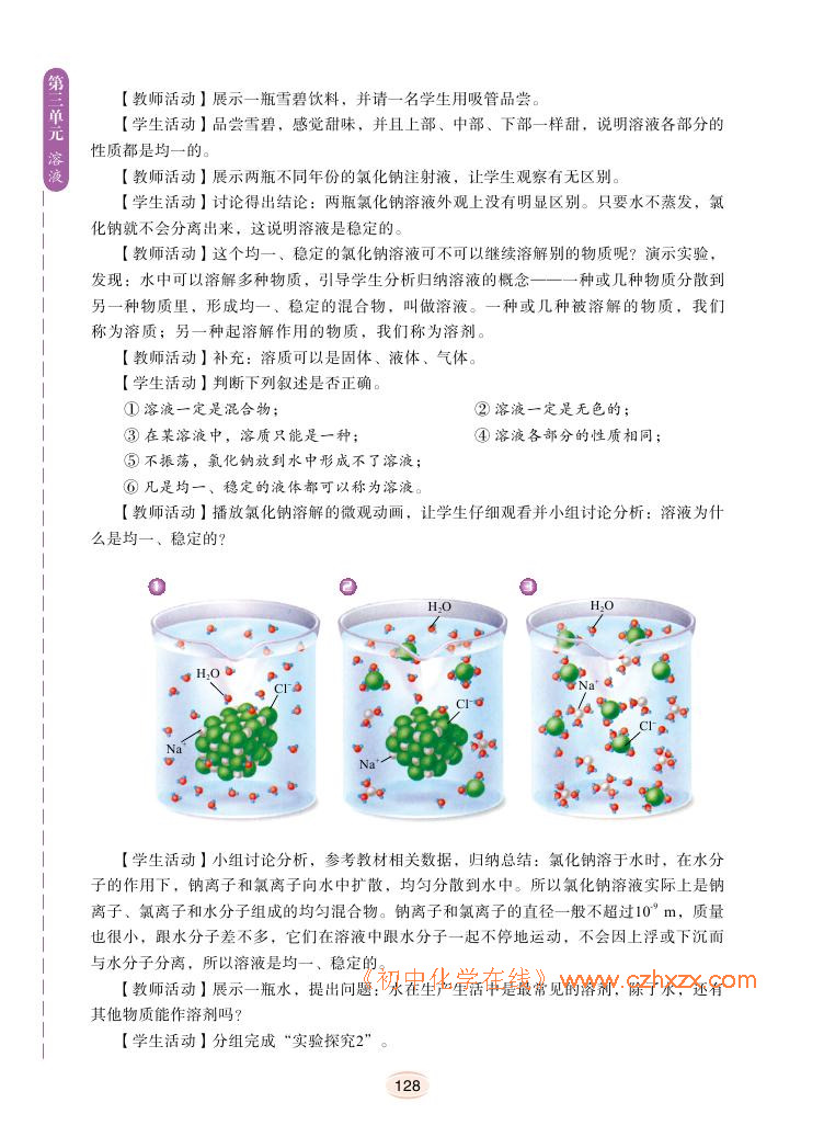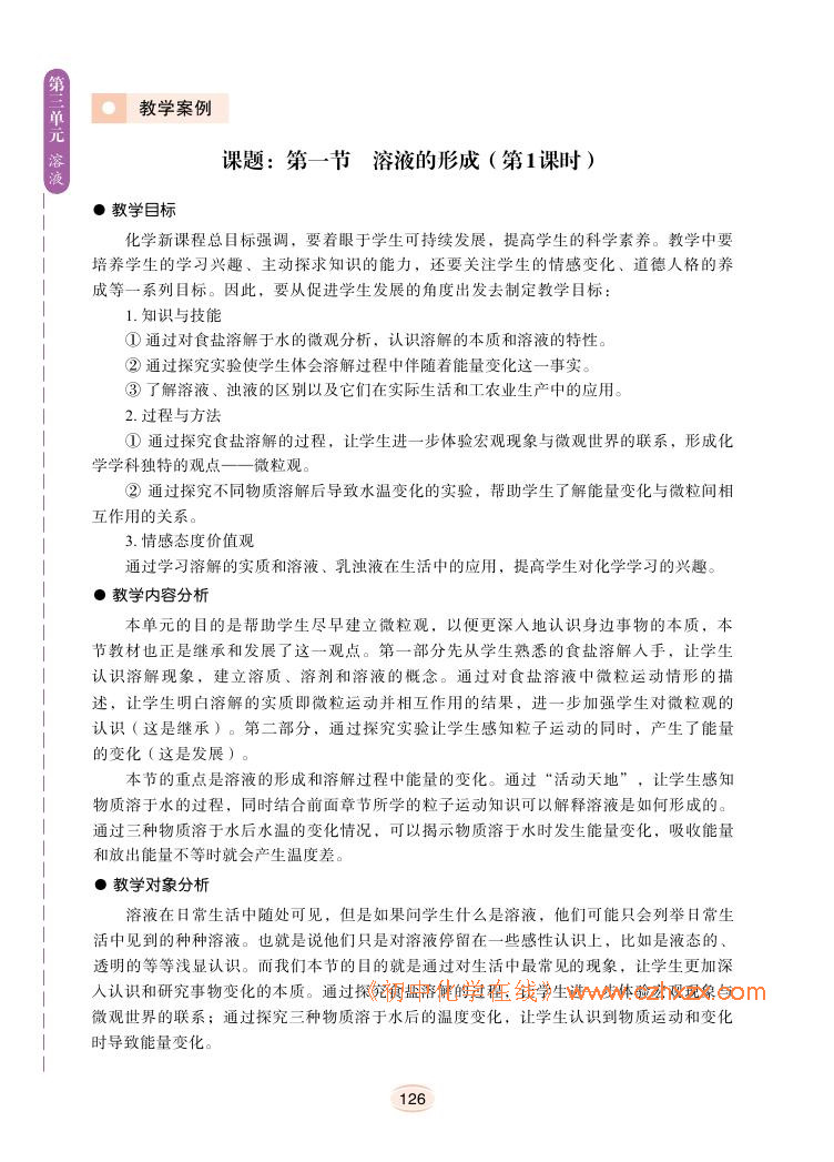 2012年新鲁教版化学九年级上册学习指导书《第三单元溶液教学案例》电子课本2